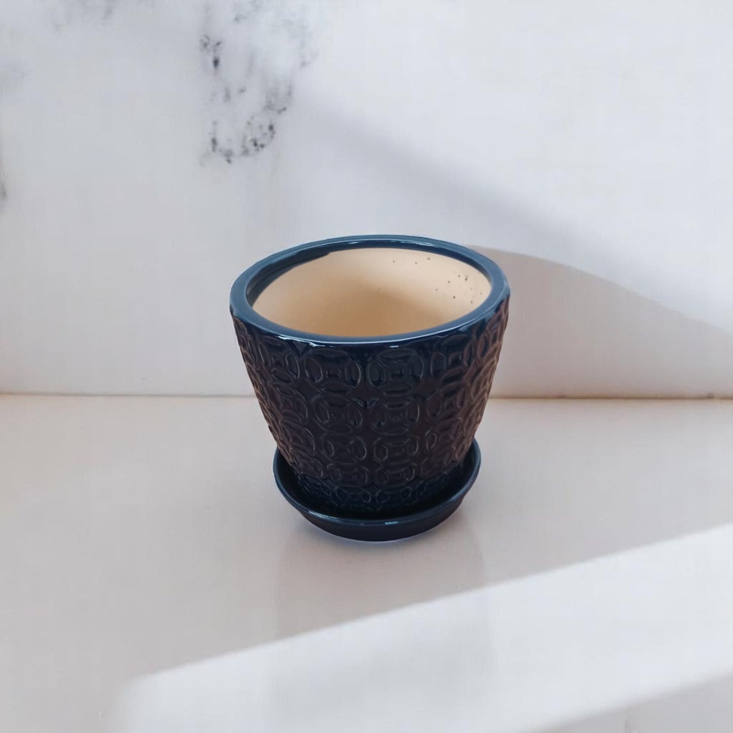 MA-006 MACETA VIDREADA AZUL MARINO CON PLATO